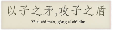 Uderzyć własną włócznią we własną tarczę; pokonać kogoś jego własną bronią.
