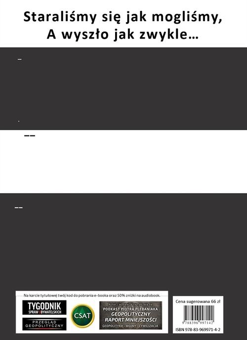 W poniższym pliku RAR znajdziesz wszystkie materiały potrzebne księgarniom: opisy książki do sklepu on-line, miniaturki okładek, przykładowe strony (jpg) i urywki książki (PDF). Pakiety księgarskie do wszystkich książek Piotra Plebaniaka są dostępne tutaj.