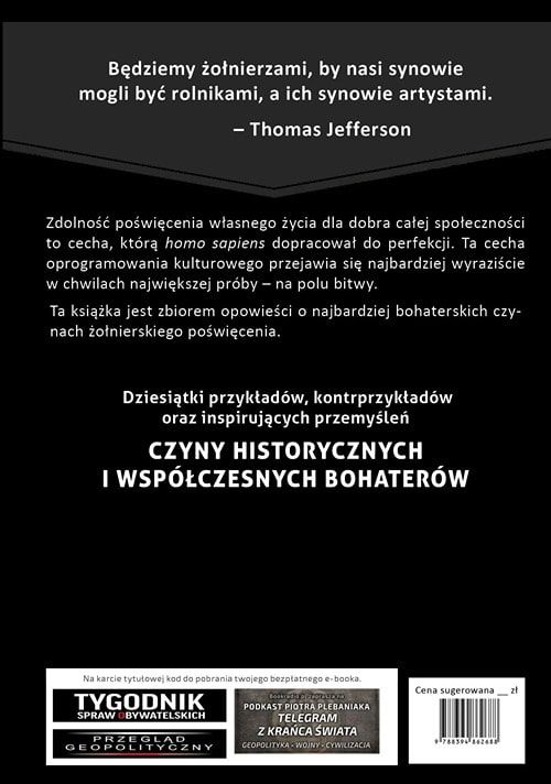 Zdolność poświęcenia własnego życia dla dobra całej społeczności to cecha, którą homo sapiens dopracował do perfekcji. Ta cecha oprogramowania kulturowego przejawia się najbardziej wyraziście w chwilach największej próby – na polu bitwy. Ta książka jest zbiorem opowieści o najbardziej bohaterskich czynach żołnierskiego poświęcenia.