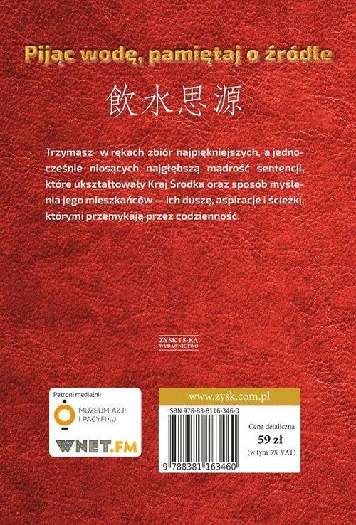 Trzymasz w rękach zbiór najpiękniejszych, a jednocześnie niosących najgłębszą mądrość sentencji, które ukształtowały Kraj Środka oraz sposób myślenia jego mieszkańców - ich dusze, aspiracje i ścieżki, którymi przemykają przez codzienność.