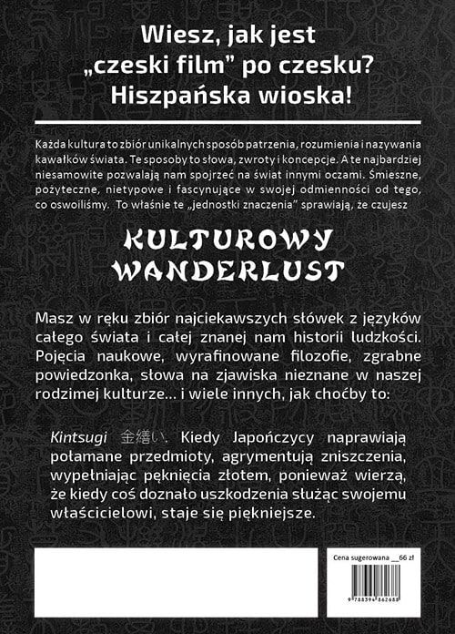 Kulturowy wanderlust* i wizjonerski zbiór słów, fraz, idei i koncepcji ze wszystkich kultur całego świata. Kultura decyduje o tym, jak postrzegamy świat. A język służy jako narzędzie przekazywania tych zdolności postrzegania – pozwala je nazwać. Każdy język ma swoje szczególne miejsca, fascynujące słowa i idiomy, które dla użytkowników innych języków i kultur są często fascynujące albo zupełnie niezrozumiałe.