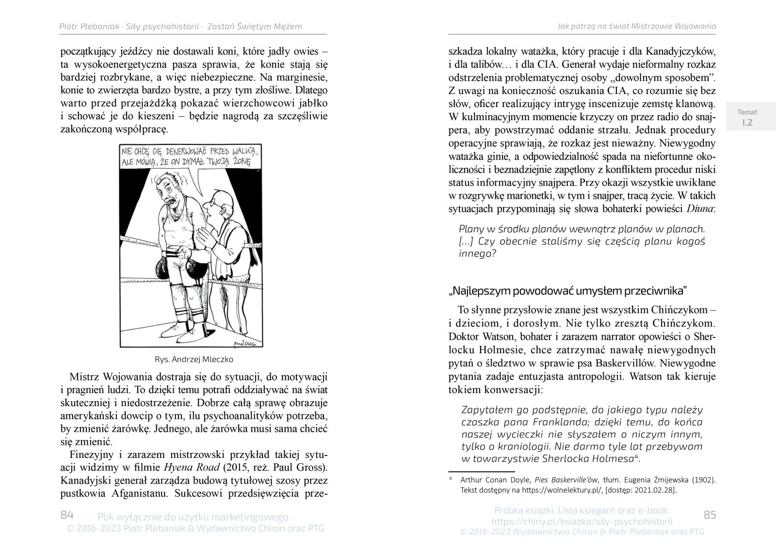 Masz w rękach studium natury ludzkiej i obserwacji świata – poradnik uczący, jak z informacyjnego chaosu wydobyć to, co ma znaczenie. To też almanach koncepcji potrzebnych do zrozumienia i opanowania technik kontroli nad biegiem wydarzeń. Poznasz je dzięki dziesiątkom inspirujących spostrzeżeń i przykładów: z życia codziennego zwykłych ludzi, aren historycznych bitew i wojen oraz geopolitycznych rozgrywek, w których na szali są losy świata. Masz w rękach studium dostrzegania prawidłowości i przewidywania przyszłych zdarzeń.