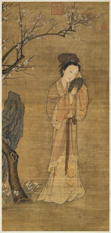 Kobieta przy kwitnącej wiśni, epoka Yuan.