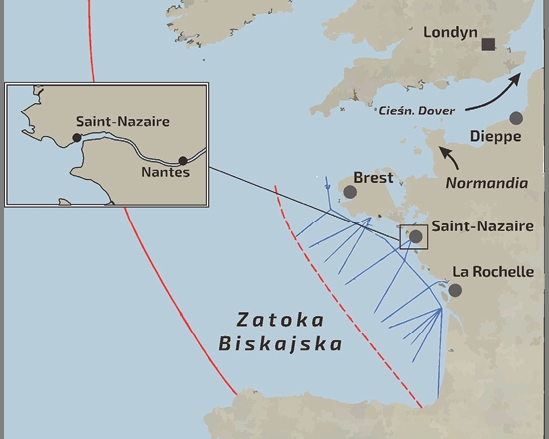 Zatoka Biskajska i lokacja Saint-Nazaire