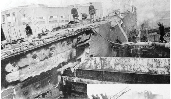 W rezultacie rankiem następnego dnia, już kilka godzin po zakończeniu strzelaniny, pokład roztrzaskanego okrętu zapełniały tłumy zwiedzających żołnierzy, przede wszystkim oficerów. Podziwiają ślady walki, widoczne na nadbudówkach i burtach. ■