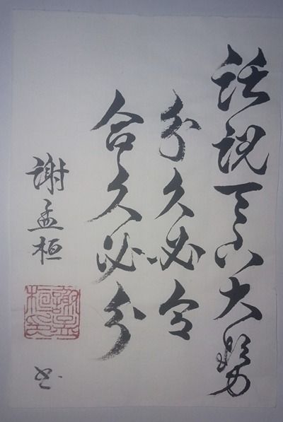 Kaligrafia oryginalna, której skan znalazł się w książce serii Zrozumieć Chiny albo na grzbiecie książki. Nota: kaligrafia będzie oprawiona w zwój jedwabny. Na zdjęciu widać wyłącznie oryginał z warsztatu artysty.